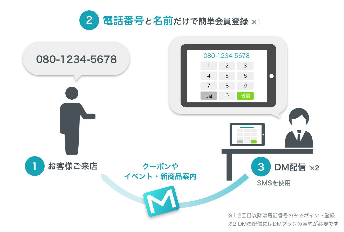 ご来店頂いたお客様を「リピーター」にする機能をご提供します